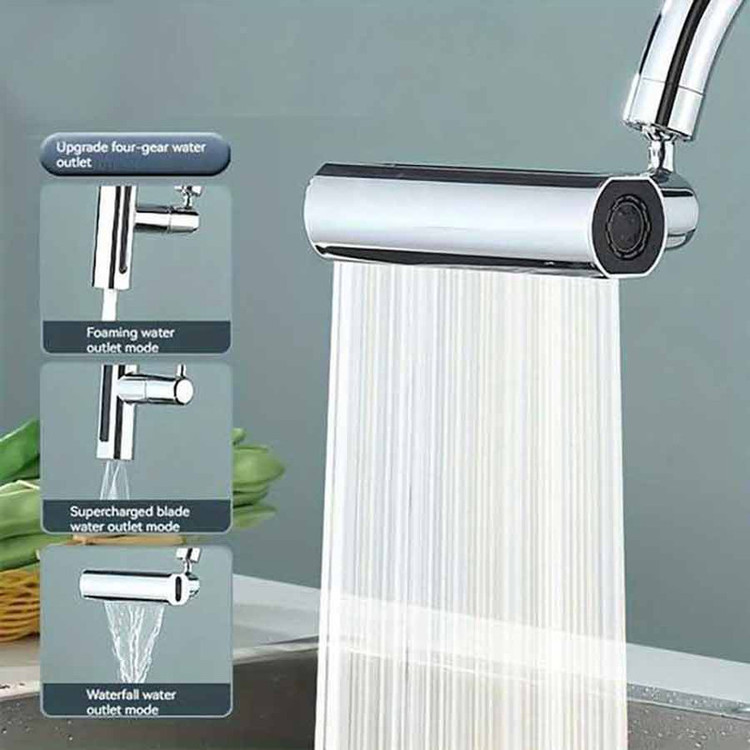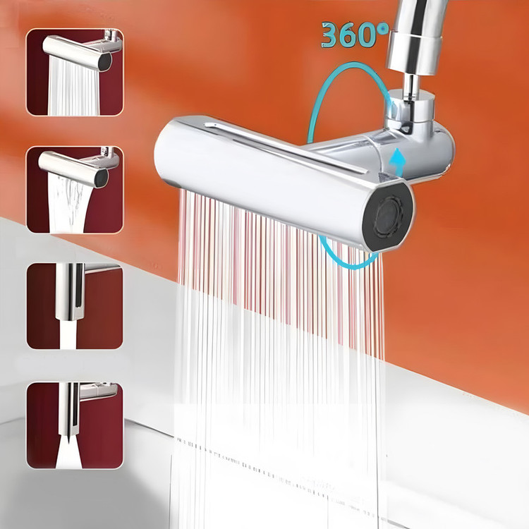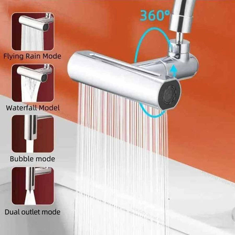 این شیر آب دارای چهار حالت مختلف است که می تواند آب را به صورت آبشاری، بارانی، یک شاخه و دو شاخه خارج کند. این حالات را می توانید در عکس ها مشاهده کنید. این شیر دارای جعبه است که اقلام همراه آن در جعبه قرار داده شده اند. این اقلام همراه شامل رابط شیر با شیر معمولی، آچار و واشر است. همچنین شیر را می توانید 360 درجه بچرخانید.