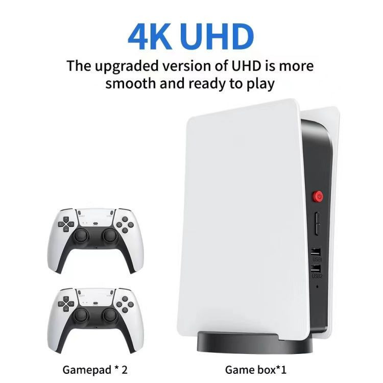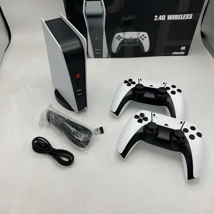 کنسول بازی کلاسیک یک شبیهساز کنسولهای نوستالژیک به همراه دو عدد گیم پد بیسیم طرح PS5 است. این کنسول شامل یک کابل شارژمیباشد و ورودی HTMI که کافی است آن را به تلویزیون وصل کنید و بیش از 15 هزار بازی را بازی کنید. گیمپدهای این دستگاه به صورت بیسیم به آن وصل میشوند. شما همچنین میتوانید با استفاده از کارت میکرو SD، بازیهای بیشتری را روی آن نصب و بازی کنید. یکی از ویژگیهای این دستگاه کوچک بودن آن و قابلحمل بودن آن است که میتوانید آن را در هرجایی که دارای تلویزیون و ورودی مناسب آن باشد از آن استفاده کنید. این محصول که دارای دو عدد کنترلر بیسیم است با استفاده از دو عدد باتری نیم قلمی AAA (در داخل بسته موجود نیست) بهراحتی قابلاستفاده و بازی است همچنین این کنسول دارای خروجی 4K هست که با استفاده از آن میتوانید تصاویر را باکیفیت بالا مشاهده و بازی کنید.