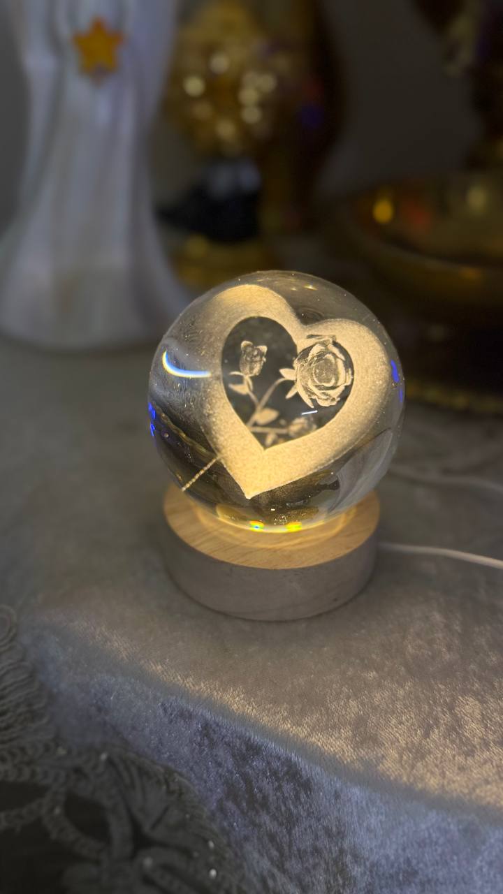 این چراغ خواب کریستالی به صورت سه بعدی و در طرح قلب تولید شده که باعث جذابیت بیشتر اتاق خواب شما می شود. جنس این گوی شیشه ای از کریستال فشرده می باشد و همچنین دارای یک پایه چوبی و کابل برق USB می باشد.درون پایه چوبی ال ای دی هایی تعبیه شده که با تاباندن نور زرد درون گوی کریستالی طرح قلب را برای شما نمایان می کند.قطر این گوی 8 سانتی متر بوده که ارتفاع آن با پایه حدودا 10 سانتی متر می باشد و به علت فشردگی کریستال به راحتی شکسته نمی شود. این محصول می تواند هدیه ای زیبا و خاص برای کسانی که دوستشان دارید محسوب شود.