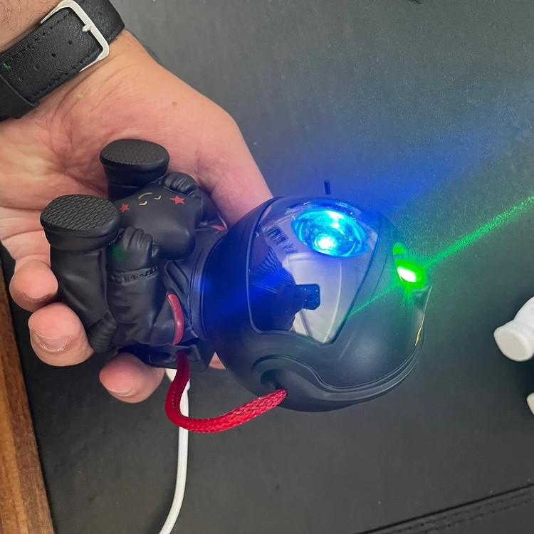 رقص نور لیزری مدل فضانورد طرح کهکشانی مینی نشسته یکی از زیبا ترین و بهترین است که پروژکتور کهکشانی طرح فضانورد نشسته یک چراغ خواب با قابلیت پخش افکت تصویر زنده کهکشانی بر روی سقف و دیوار اتاق است که به همراه افکت لیزر ستاره ای حس یک سفر کهکشانی را قبل از خواب به شما میدهد . تلفیق همزمان تصویر زنده کهکشانی و لیزر ستاره ای جذابیت اتاق خواب شما را چندین برابر میکند . این محصول دارای ریموت کنترل نیز می باشد که میتواند نور پرژکتور یا لیزر را کم یا زیاد و یا برای روشن ماندن محصول تایمر تعریف کنید . برای روشن کردن این محصول باید از آداپتور موبایل استفاده کنید و از طریق کابل داخل بسته بندی آن را شارژ نمایید.