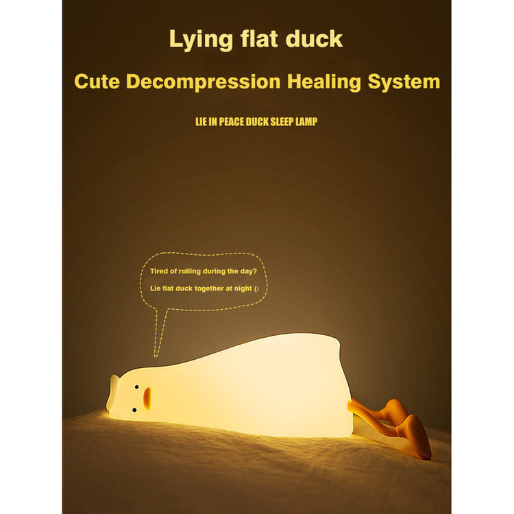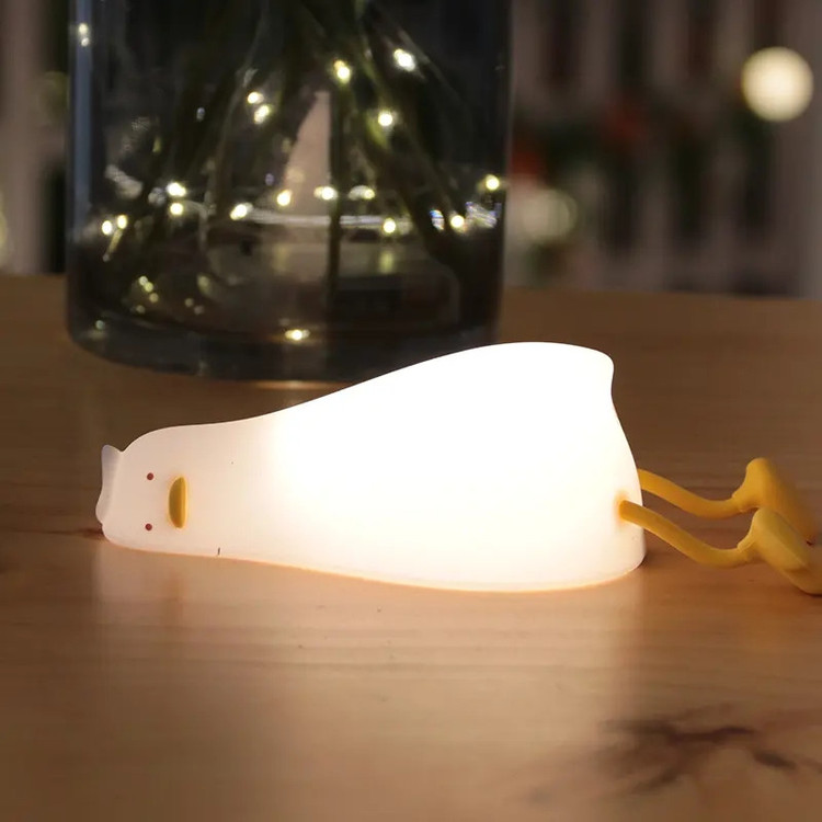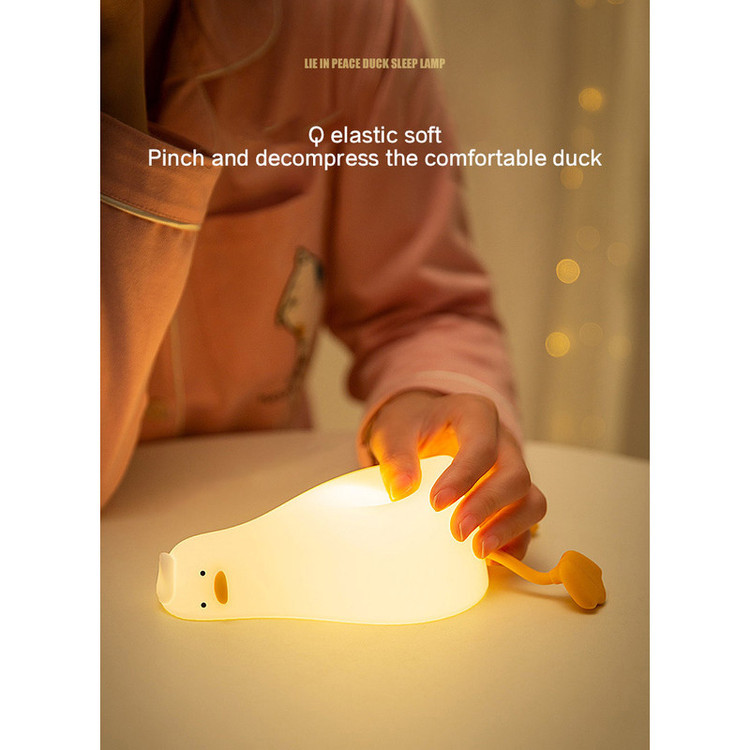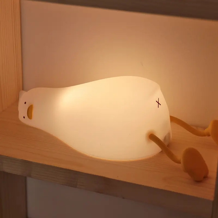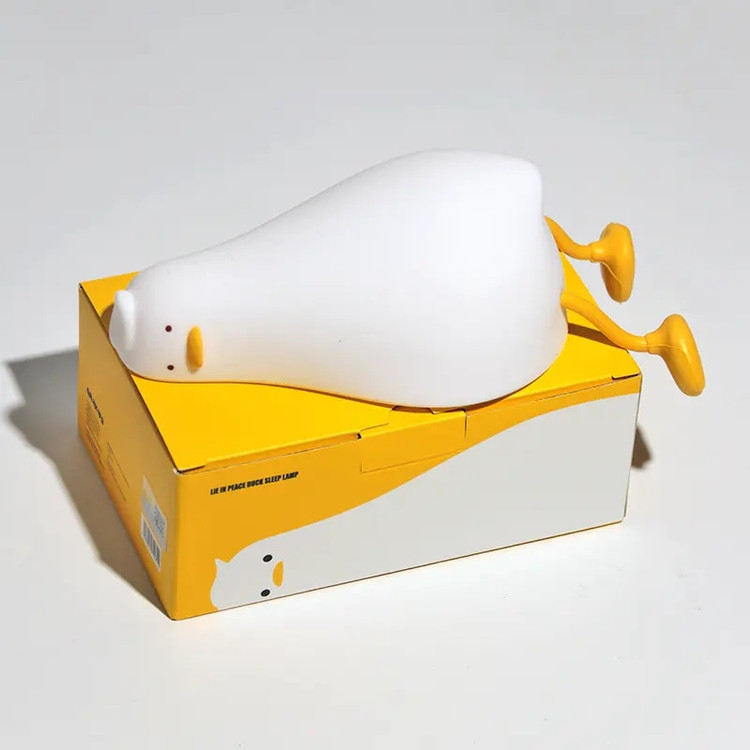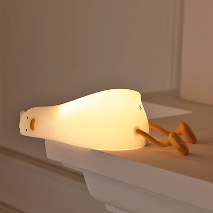 چراغ مطالعه و رومیزی اردک مدل خسته یک دکوراتیو جذاب و مینیمال است که می تواند به اتاق خواب، محل کار یا هر فضای دیگری جلوه ای زیبا و بامزه ببخشد. این چراغ خواب دارای دیمر است بدین معنی که شدت روشنایی آن در 3 درجه مختلف قابل تنظیم است که با یک ضربه کوچک به پشت اردک میتوان میزان روشنایی را تغییر داد. در زیر شکم این اردک خسته یک کلید سه حالته قرار دارد که می توان آن را در حالت خاموش، روشن و تایمر 30 دقیقه ای قرار داد. اگر کلید را روی حالت 30 دقیقه قرار دهید بعد از نیم ساعت به صورت خودکار چراغ خواب خاموش می شود. چراغ خواب اردک مدل خسته دارای یک باتری 1200 میلی آمپر ساعتی داخلیست که حدود 2 ساعت شارژ کامل آن زمان می برد و می تواند برای 4 تا 6 ساعت بسته به میزان روشنایی تنظیم شده نوردهی داشته باشد. یک ویژگی جالب این چراغ خواب امکان استفاده از آن به عنوان استند موبایل است، فقط کافیست گوشی خود را روی پاهای اردک قرار دهید تا موبایلتان را برای شما نگه دارد و به راحتی به تماشای فیلم دلخواه خود مشغول شوید. به همراه این محصول یک دفترچه راهنما و یک عدد کابل تایپ C جهت شارژ محصول ارائه می گردد.