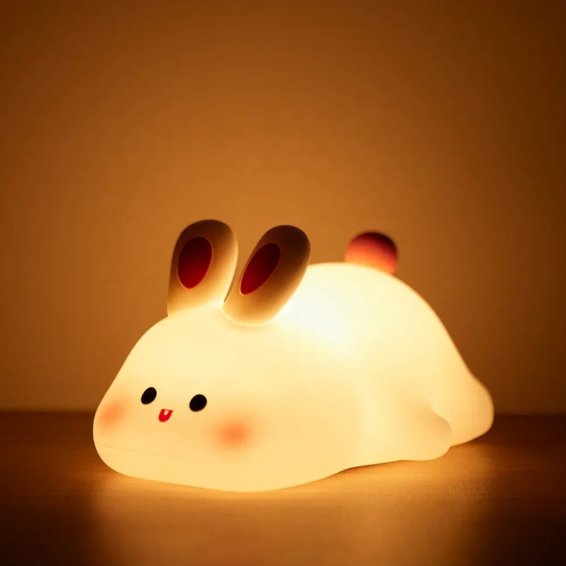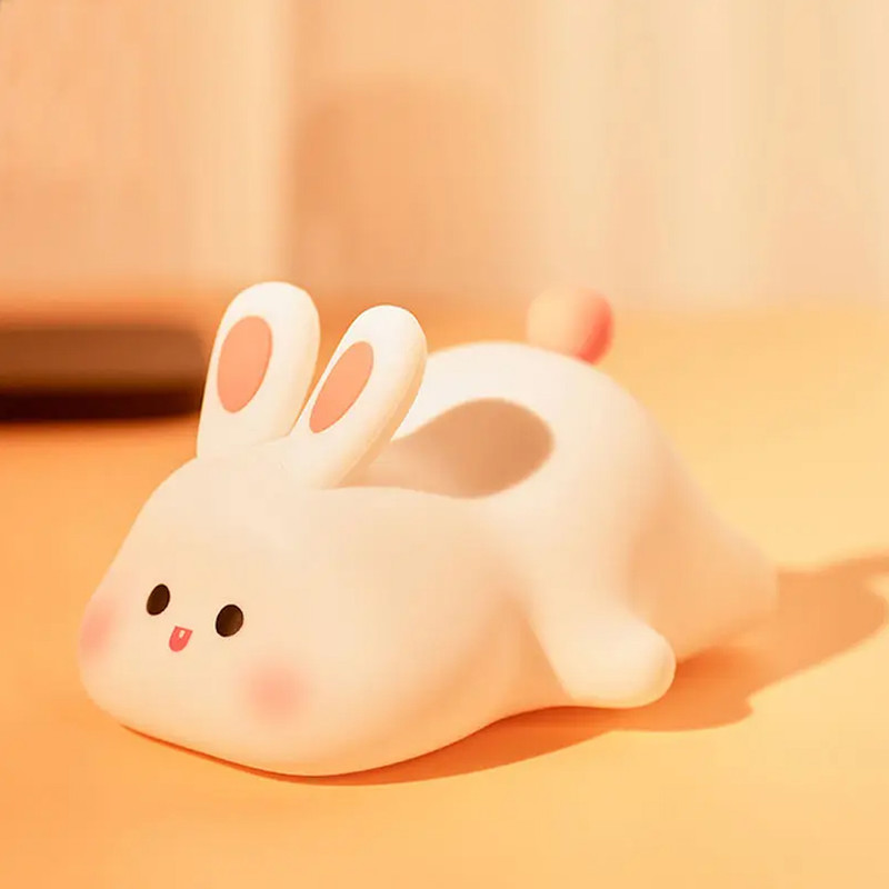 چراغ خواب کودک مدل خرگوش وسیله ای زیبا و کاربردی و البته ضروری برای اتاق خواب کودک شماست. جنس این چراغ خواب سیلیکونی بوده و از هرگونه آسیب رسانی به کودک شما جلوگیری می کند. این چراغ خواب با طراحی جذابی به شکل خرگوش دارای حالت نوری شب خواب است. چراغ خواب کودک یک ویژگی جذاب دارد که می توانید با ضربه زدن به سطح سیلیکونی چراغ خواب آن را روشن و خاموش کنید. این چراغ خواب کودک قابلیت شارژ مجدد را داراست و از طریق کابل Type-C (تایپ سی) موجود در جعبه می توانید آن را شارژ نمایید.
